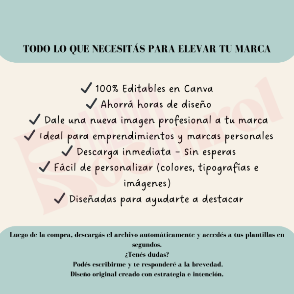 Descargás el archivo, accedés a los enlaces de Canva, personalizás con tus colores, tipografías e imágenes, y empezás a publicar en minutos.